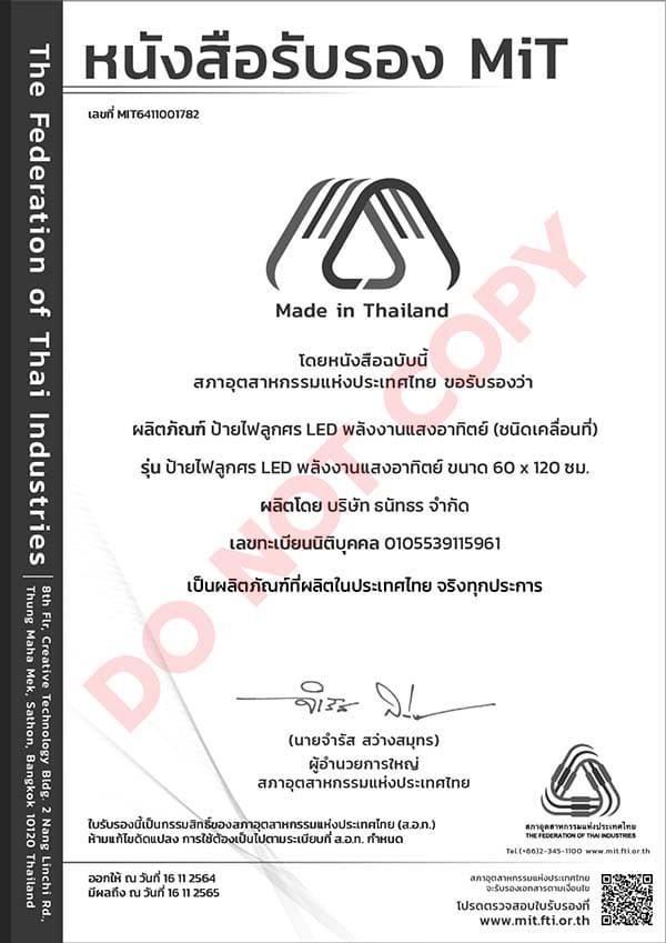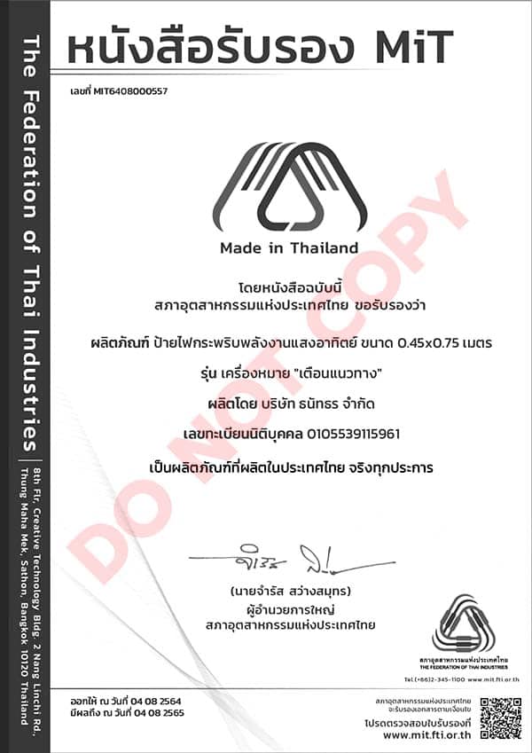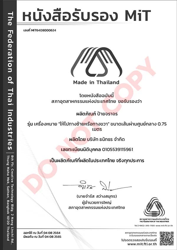 ผลิตภัณฑ์ที่ได้รับการรับรองจากสภาอุตสาหกรรมแห่งประเทศไทยเป็นผลิตภัณฑ์ที่ผลิตในประเทศไทย (MiT)