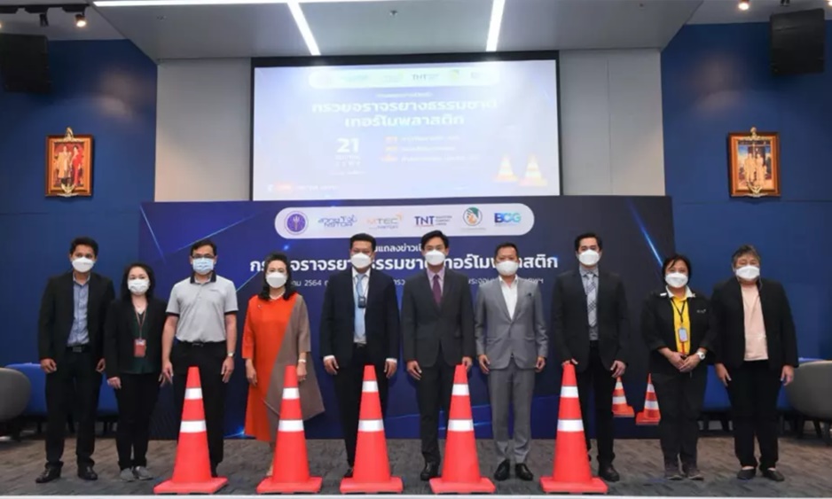 The government has launched a policy to drive the economy through the BCG Economy Model, focusing on the use of “Green Materials” such as natural rubber which has gained a strong interest by the industrial sector. MTEC (NSTDA) brings forward the Thermoplastic Natural Rubber (TPNR) manufacturing technology, this in combination with Tanattorn Co., Ltd.’s expertise in traffic cone production introduced a special grade traffic cone into the market, as a replacement to the use of Ethylene Vinyl Acetate Copolymer (EVA).