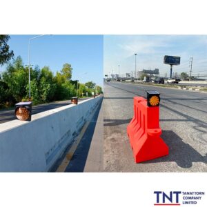- สามารถติดตั้งบนแบริเออร์ กรวยจราจร ถังจราจร แบริเออร์น้ำ แบริเออร์หัวเกาะได้