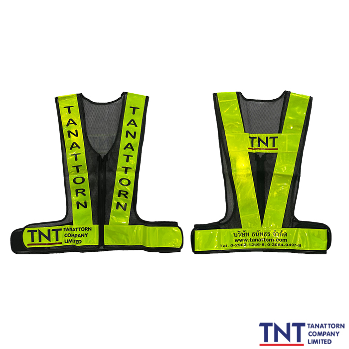 • ติดแถบสะท้อนแสง ลักษณะเสื้อเป็นตาข่ายสีดำ แถบสีเหลืองเขียว