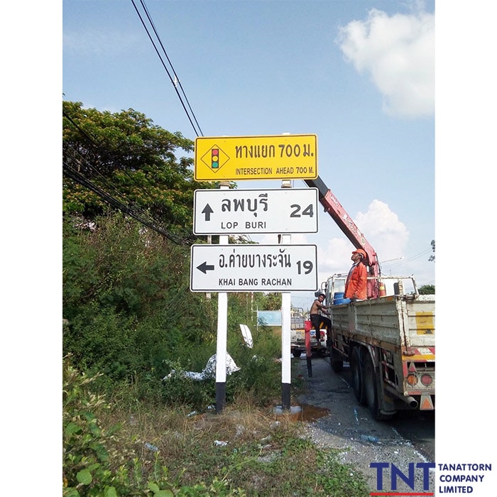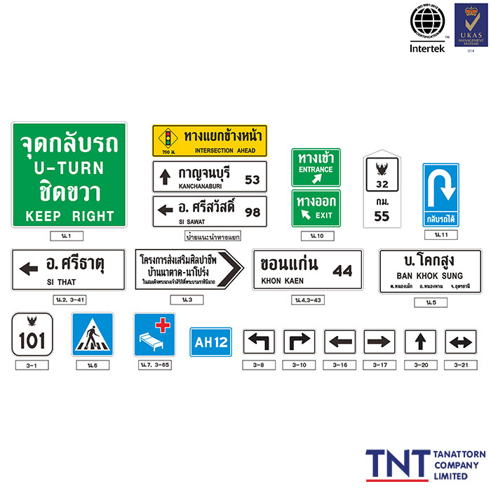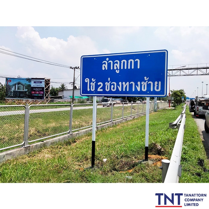 - ขนาดป้าย สัญลักษณ์ และตัวอักษร เป็นไปตามข้อกำหนดของกรมทางหลวง