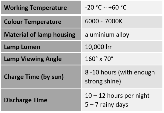 - รูปทรงสวยงามทันสมัยออกแบบให้แผงโซล่าเซลล์และแบตเตอรี่ฝังอยู่ในตัวโคม ALL-IN-ONE DESIGN