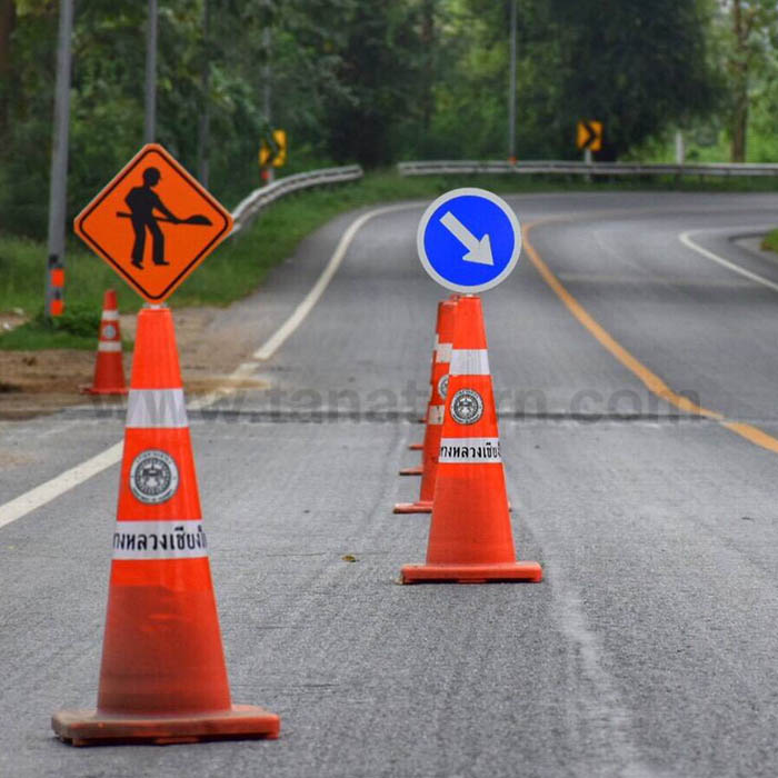กรวยจราจร พร้อมป้ายยอดกรวยจราจร