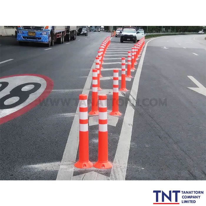 - หลักล้มลุกสีส้มฟลูออเรสเซนต์สะท้อนแสงในตัวเอง ทำให้เห็นได้ชัดเจนยิ่งขึ้นทั้งในเวลากลางวัน และกลางคืน